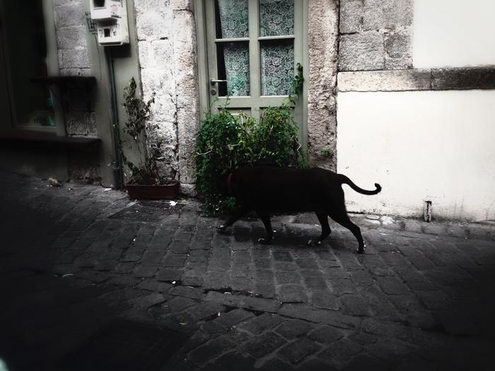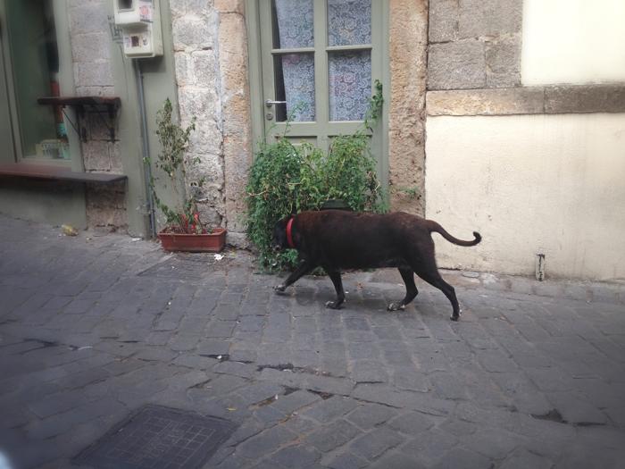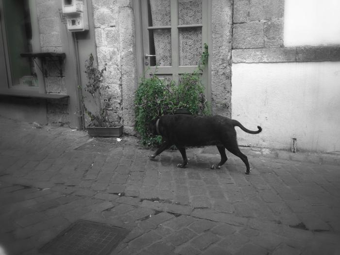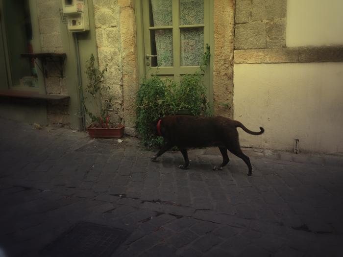 Σκέφτομαι πως η φωτογραφία αυτή μού αρέσει επειδή έχει μια υλικότητα και μια πλαστικότητα και μια αλήθεια που ξεπερνάει την προφανή αλήθεια της εικόνας. Σκέφτομαι πως η φωτογραφία θα μου άρεσε ούτως ή άλλως, ακόμα και αν δεν ζούσε εντός της ένας τυχαίος, ανώνυμος σκύλος. Σκέφτομαι πως έχει αποτυπώσει την παραγνωρισμένη και δυσφημισμένη αστική ομορφιά, την ομορφιά των ρυπαρών στενών της πόλης. Την ομορφιά που έχουν όταν τα φωτίζει ο ήλιος με αυτό το συγκεκριμένο φως ή την ομορφιά που έχουν όταν τα φωτίζει η ζωή των άλλων που γράφουν πράγματα με την δική μας υπογραφή ερήμην μας. Αυτή όμως -σκέφτομαι κάπως ταραγμένος- μπορεί και να ΄ναι η ομορφιά της καθημερινότητας της γραφής. Και εν τέλει ανακουφίζομαι, καθώς αυτούς που δεν γράφουν ποτέ, αδυνατώ να τους καταλάβω, όπως και τους άλλους που μιλάνε πολύ, αντίθετα με τους άλλους που δεν μιλάνε πολύ μα ούτε και γράφουν σαν τους άλλους, τους άλλους, αυτή τη μάστιγα.